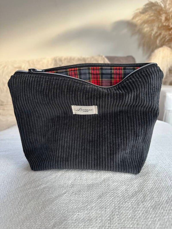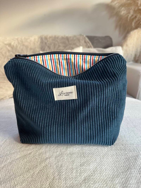 Disponible en deux tailles (M ou L), cette trousse en velours côtelé vous accompagnera partout. Que ce soit pour votre maquillage, les affaires de bébé, votre petite pharmacie ou autre, vous serez séduit par son design épuré et ses matériaux certifiés Oeko-Tex. Entièrement personnalisable avec le choix des tissus extérieurs et intérieurs, je vous propose d'aller plus loin en ajoutant une broderie à votre image. N'hésitez plus, faites-vous plaisir !