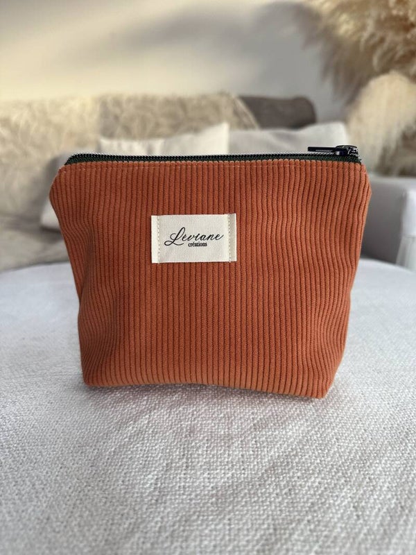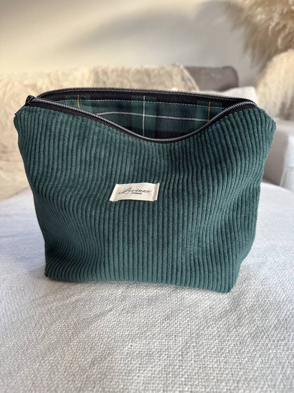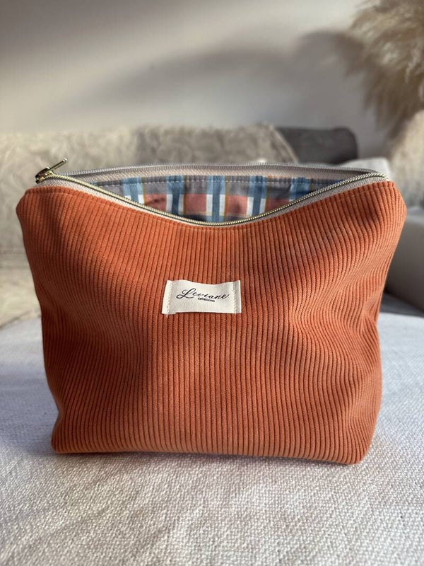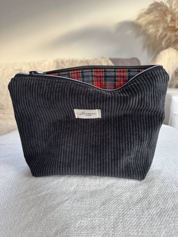 Disponible en deux tailles (M ou L), cette trousse en velours côtelé vous accompagnera partout.